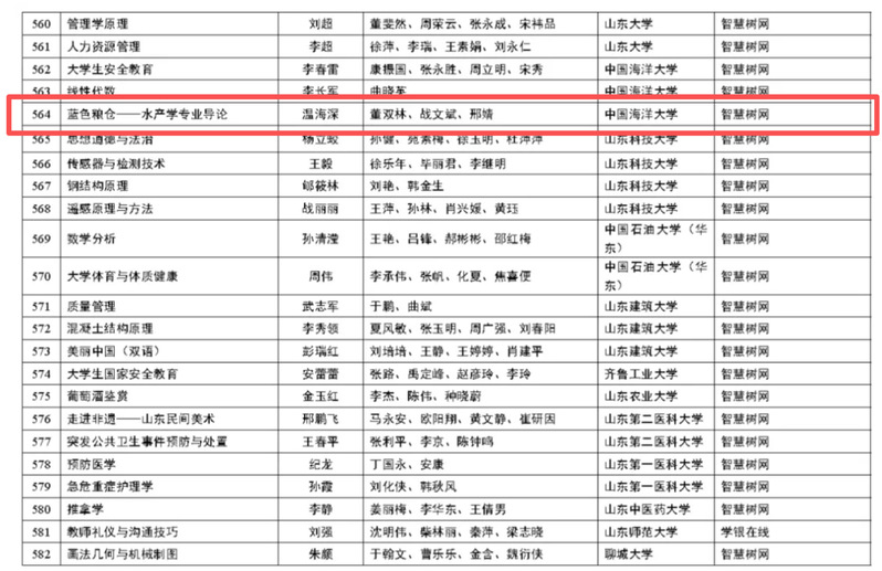 近日,教育部发布了《关于第三批国家级一流本科课程认定结果的公示》通知,本中心主任温海深教授负责的《蓝色粮仓-水产学专业导论》课程成功入选。
