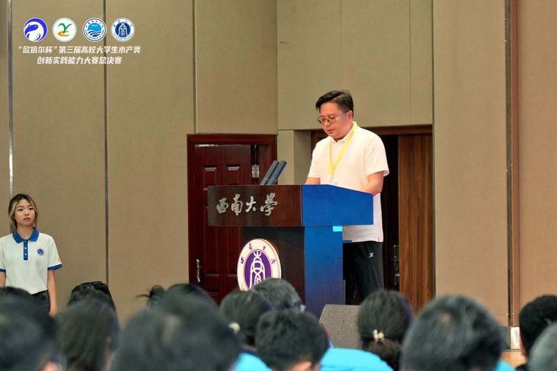 北京欧倍尔软件技术开发有限公司市场经理田海林、中国海洋大学水产学院副院长高勤峰、西南大学水产学院副院长何文平在闭幕式上致辞,闭幕式由西南大学水产学院党委副书记、纪委书记刘一丹主持。